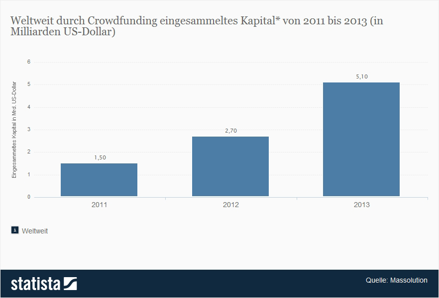 Worldwide collected capital through crowd funding from 2011 to 2013 (in billion USD)