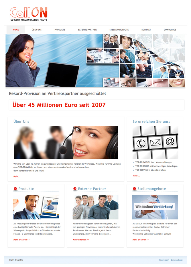 For more than 15 years CallON is a successful and reliable partner of distribution channels. CallON offers call center operators attractive products. Effective adverting measures with focus on telemarketing and call center / outbound are an integral part of the company strategy.