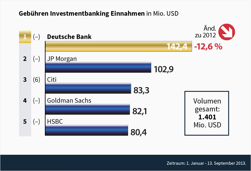 Publiziert von: RedaktionUrsprĂĽnglich war die Deutsche Bank Spitzenreiter in der Disziplin des Investmentbankings.
